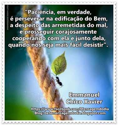 Paciência, em verdade, é perseverar na edificação do bem, a despeito das arremetidas do mal, e prosseguir corajosamente cooperando com ela e junto dela, quando nos seja mais fácil desistir.
