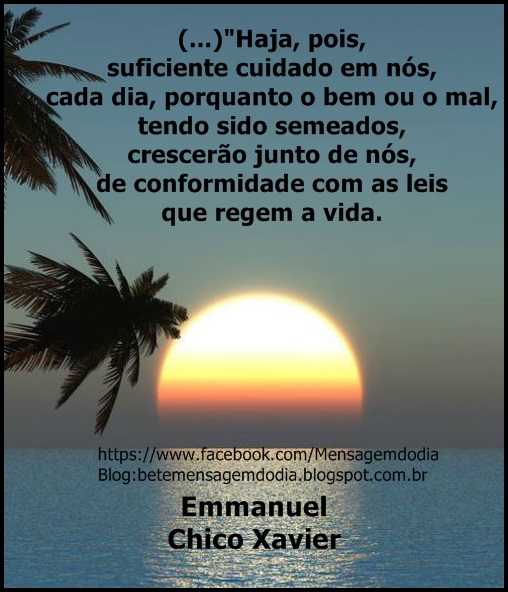 Dissemina a boa semente, edifica no Espírito Eterno, ergue o teu santuário interior para o Mestre e atende às obrigações edificantes que te foram confiadas.